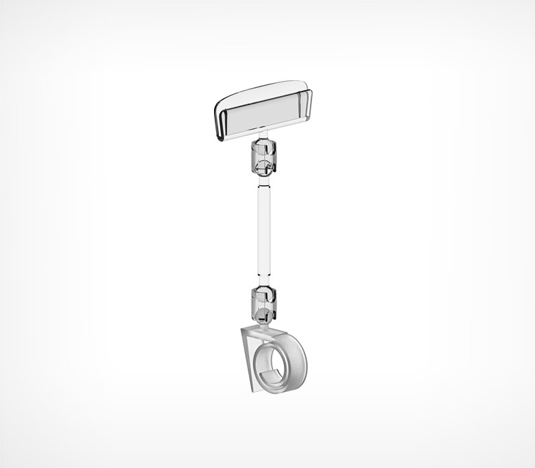 УНИВЕРСАЛЬНЫЙ ДЕРЖАТЕЛЬ ЦЕННИКА УЛИТКА, ПОЗВОЛЯЮЩИЙ КРЕПИТЬ ЦЕННИКОДЕРЖАТЕЛЬ НА ПОСУДУ, ПРОДУКТЫ, КРАЙ ПОЛКИ РАЗНОЙ ТОЛЩИНЫ. УГОЛ НАКЛОНА ЦЕННИКА РЕГУЛИРУЕТСЯ С ПОМОЩЬЮ ШАРНИРОВ.