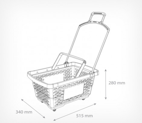 Покупательская корзина DISCO сочетает в себе функции переносной корзины и корзины-тележки. Удлиненная ручка и ручка для переноса фиксируются в удобном для покупателя положении. Поворотные колесики, не оставляющие следов на полу, обеспечивают маневренность корзины в торговом зале. Корзина по бокам имеет поля для брендирования размером 196х105 мм. Объем: 28 литров