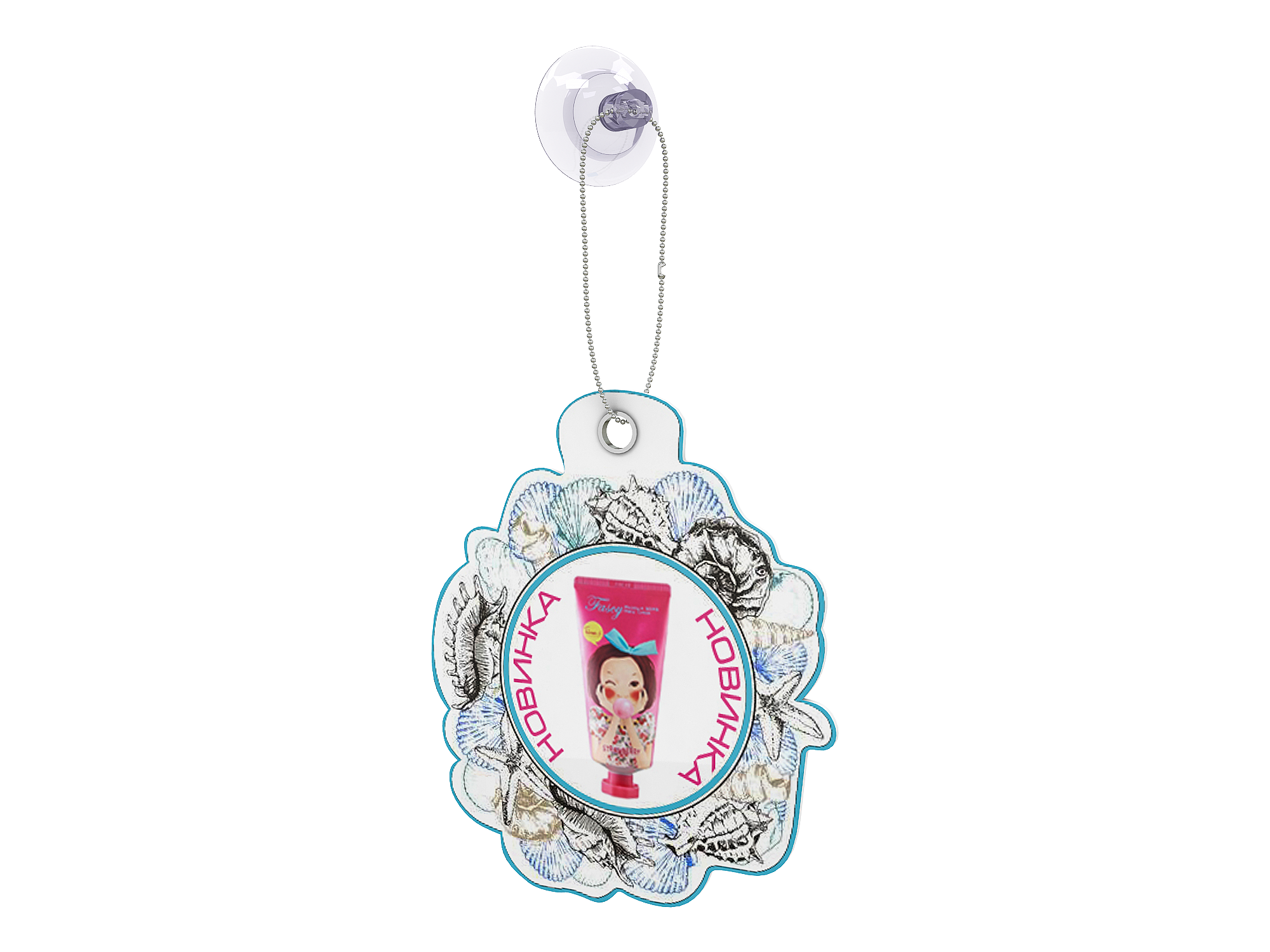 Силиконовая присоска с тремя отверстиями для крепления рекламных материалов. Оснащена двойным контуром крепления.