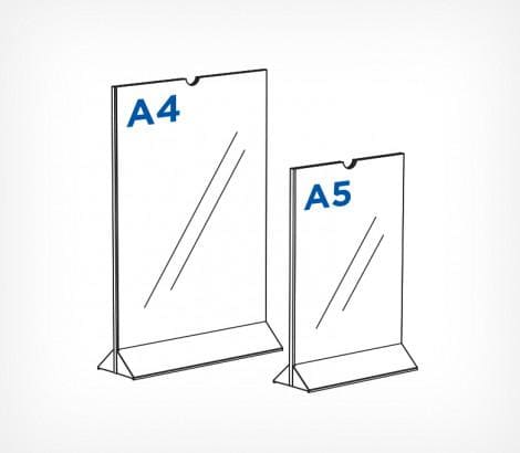 Подставка для размещения меню или рекламно-информационных листовок  формата А4 и А5. Легкая и удобная смена носителя с загрузкой сверху и вертикальным вариантом размещения. Имеет устойчивое треугольное основание.
