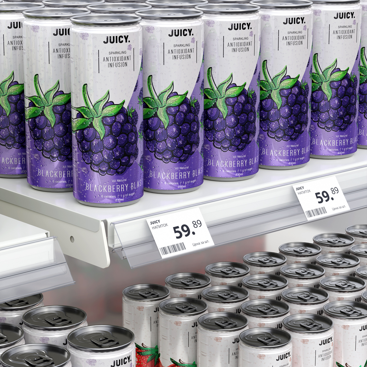 Фиксируется на стеллажах TEGOMETALL, MAGO, РУСЬ и подобных. Возможна установка двух положений наклона ценника к торцу полки. Высота - 39, 52, 60 мм
