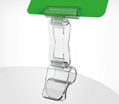 Компонент Дели-системы, держатель соединительный, используется в комбинации с подставкой или с держателем для посуды  как соединитель с изменяющимся углом наклона ценника. Позволяет регулировать угол наклона и высоту ценника.
