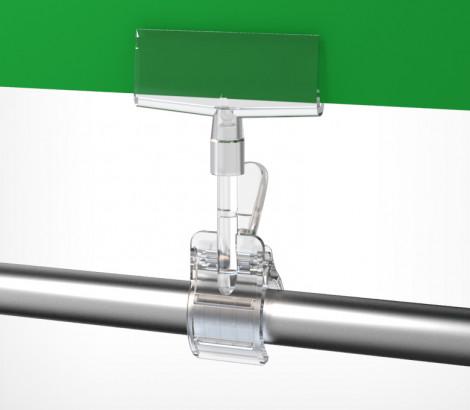 Держатель рекламного плаката из картона, заламинированной бумаги или пластика с зажимом-прищепкой для крепления на трубе (макс Ø 40 мм), товаре, краю полки (макс.толщина 35 мм).