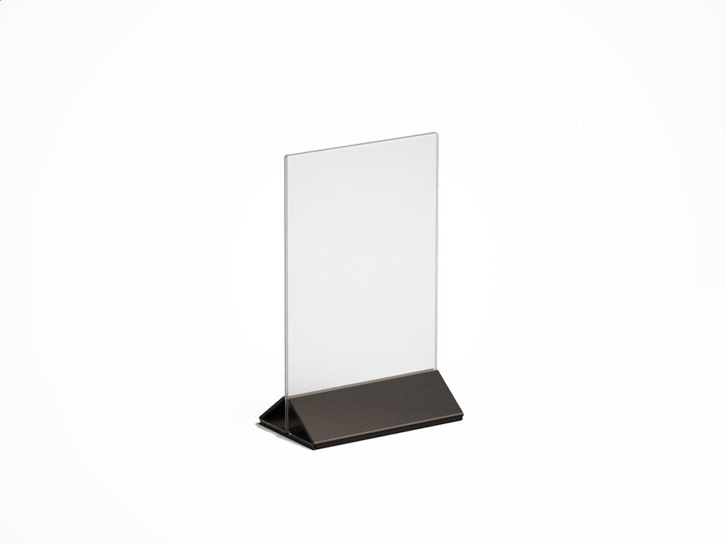 МЕНЮХОЛДЕР ФОРМАТА А-6, С НИЖНЕЙ ЧАСТЬЮ РАЗЛИЧНЫХ ЦВЕТОВ, КЛАСИЧЕСКОГО ВИДА. СОСТОИТ ИЗ ДВУХ ЧАСТЕЙ, ПРОЗРАЧНОГО Т-ОБРАЗНОГО ПЛАНШЕТА И НИЖНЕГО ДЕРЖАТЕЛЯ, ТРЕУГОЛЬНОЙ ФОРМЫ. ВОЗМОЖНО НАНЕСЕНИЕ ЛОГОТИПА.