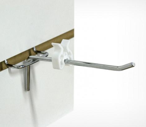 Ограничитель товара предназначен для фиксации товара  на крючках  при транспортировке дисплея, а также для ограничения рабочей длины крючка. Подходит для двойных и одинарных крючков. Стандартный  цвет - белый.