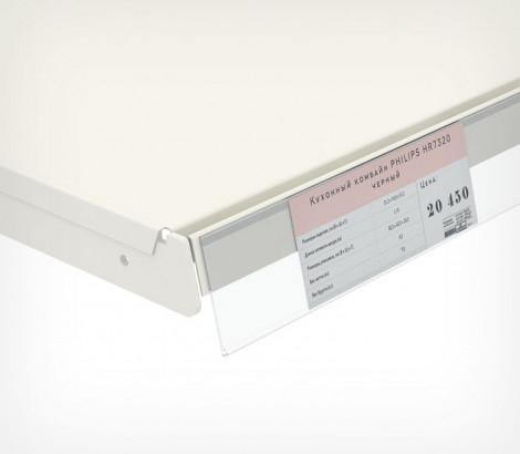 Широкий универсальный ценникодержатель DBR высотой 60 мм применяется для размещения ценников большего размера чем стандартные.  Имеет нанесенный двухсторонний скотч для монтажа.